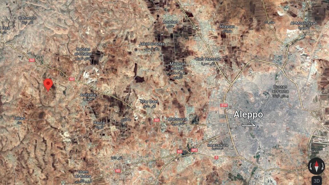 We have been able to geolocate the exact position of the attack to the coordinates of 36°13’43.0″N 36°54’22.5″E. This locates the SAA outpost 21 km West of Aleppo, in the village of Bala, close to the larger town of Anjara.