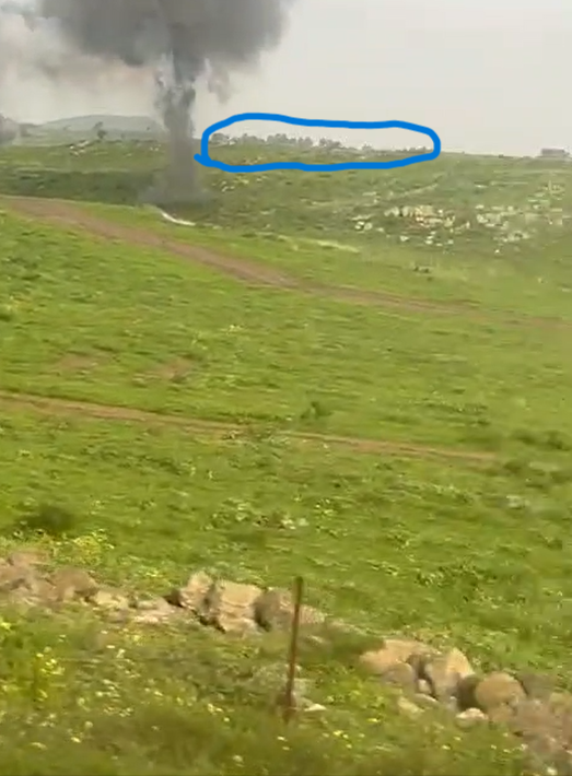 The video also shows that in the distance there appears to be a forested area. This area is also east of the road, but further south than the area being targetted by the rockets.