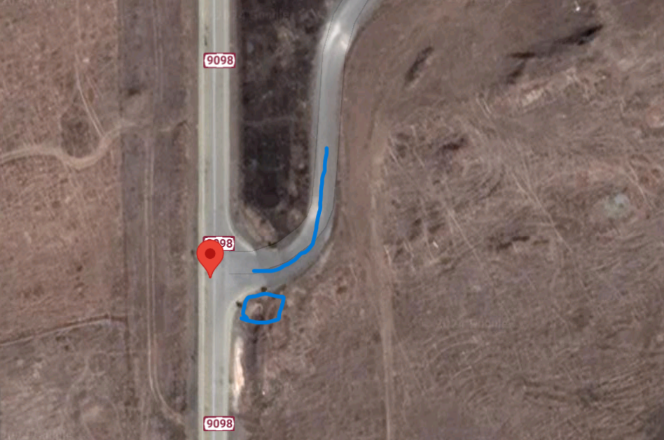 With a close-up screenshot of Google Maps satellite imagery, the aforementioned side road and its distinct Northwards bend are visible. Also, the storm drain shown in the video can plausible be made out on the southern side of the point where the two roads join.