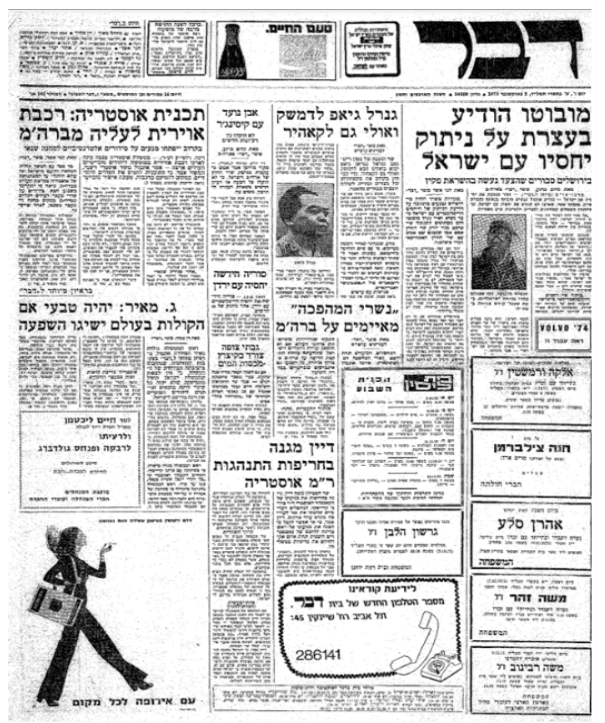 Front page of Israeli newspaper Davar, October 5th 1973.