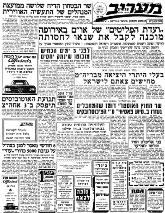 Front page of Israeli newspaper Ma’ariv, October 5th 1973.